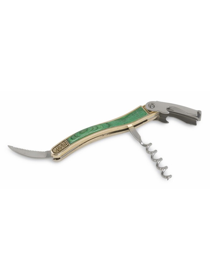 Praticissimo cavatappi professionale, struttura robusta in acciaio e legno di colore verde per stappare con minimo sforzo le tue bottiglie di vino