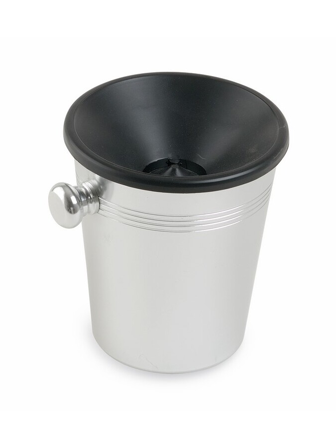 Pratica Sputacchiera in alluminio con coperchio in plastica nera, resistente e leggera, antigraffio, indispensabile nelle manifestazioni degustative.