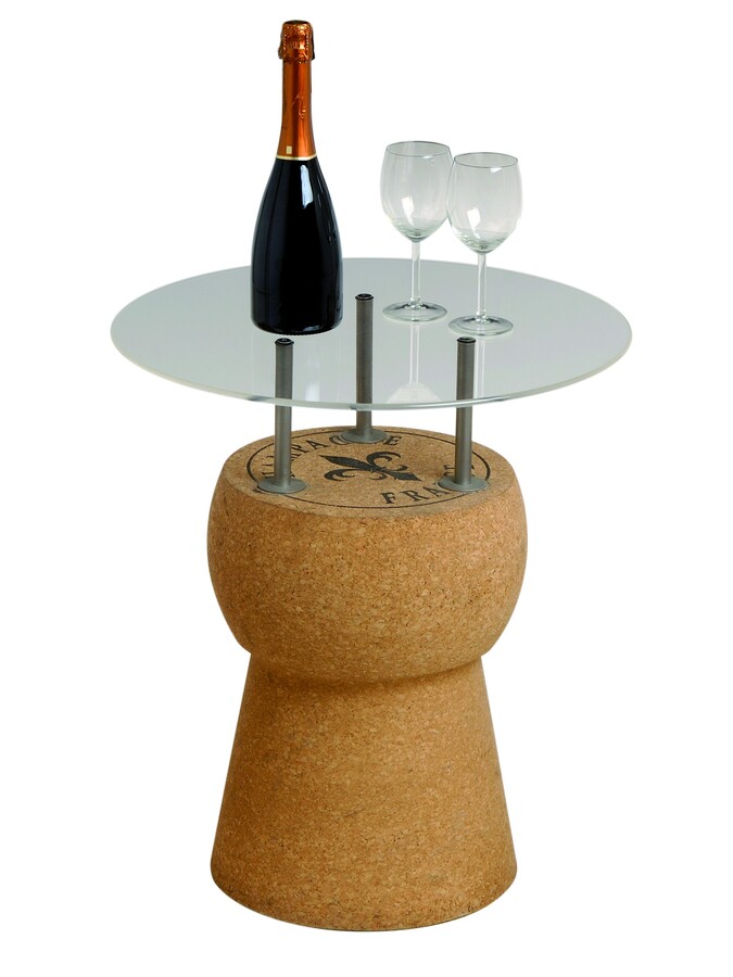 Arredo: Tavolo in sughero massiccio con base d’appoggio in acrilico trasparente, resistente, leggero, ottimo designer ideale per arredare gazebo, bordo piscine per degustare i tuoi freschi vini.