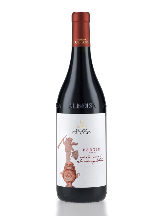 Stappare e decantare Barolo del Comune di Serralunga d'Alba Tenuta Cucco alcune ore prima di servire a temperatura di 16 - 18°C in calice ampio Ballon.