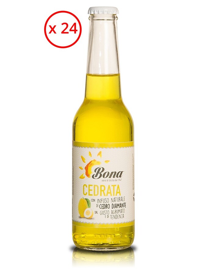 Un infuso naturale di cedro varietà diamante, il colore è giallo carico limpido, dal sapore dolce agrumato, fresco e dissetante. Ottima per preparare il cocktail Apertas: (7 parti) di Cedrata Bona con ghiaccio, (3 parti) di bitter rosso, uno spicchio di succoso limone fresco, o di arancia.