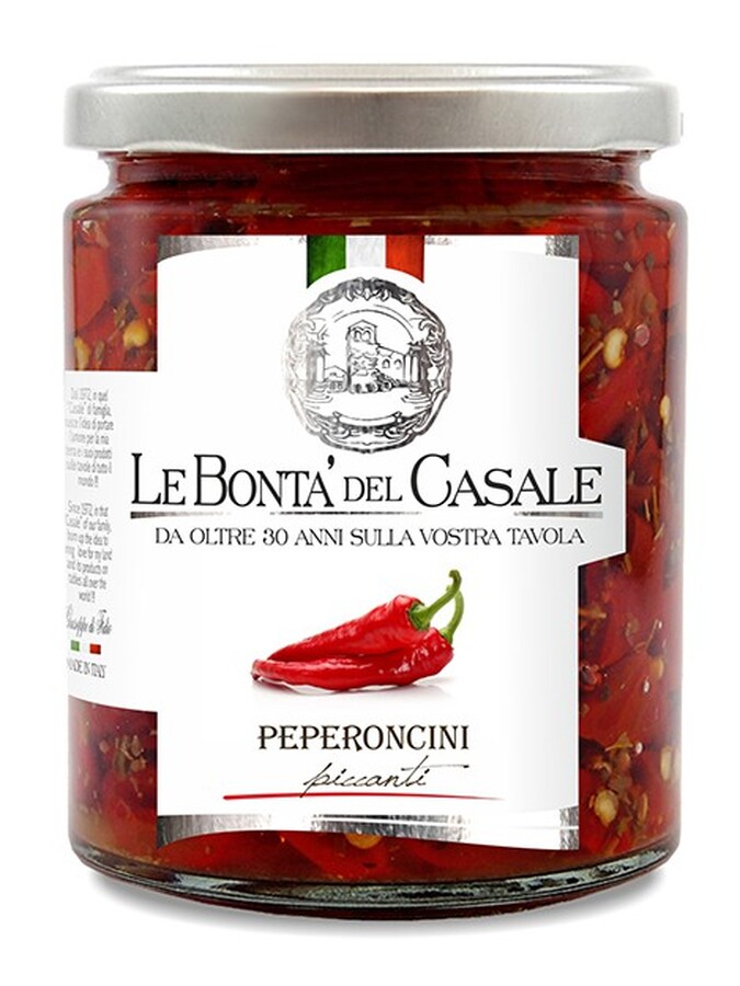 Peperoncini, olio di semi di girasole, olive, aceto di vino, sale, erbe aromatiche, spezie.