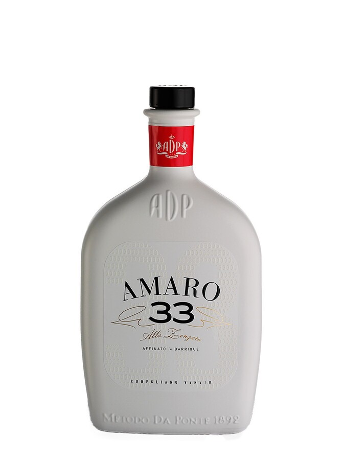 Amaro 33 con Zenzero all’essenza più pura. L'Amaro 33 Da Ponte regala un fresco benessere degustato liscio oppure on the rocks. Le delicate note pungenti dello zenzero incontrano raffinate partite di Grappa di Prosecco invecchiata donando una nota esotica e suadente, un retrogusto vellutato e originale, tutto da scoprire. Amaro 33 è una proposta innovativa e anti-conformista capace di legare il tradizionale piacere dell'amaro con un contrappunto giovane e inaspettato.
