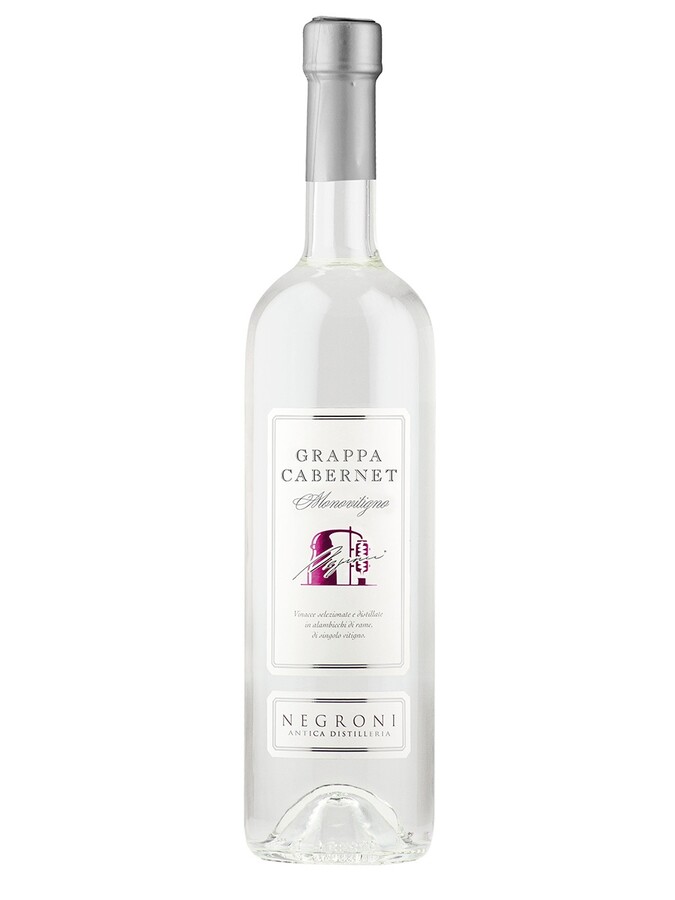 Ottima Grappa di Cabernet monovitigno 50cl Negroni Antica Distilleria a fine pasto o in accompagnamento con un sigaro dalla base dolce ed aromatica.