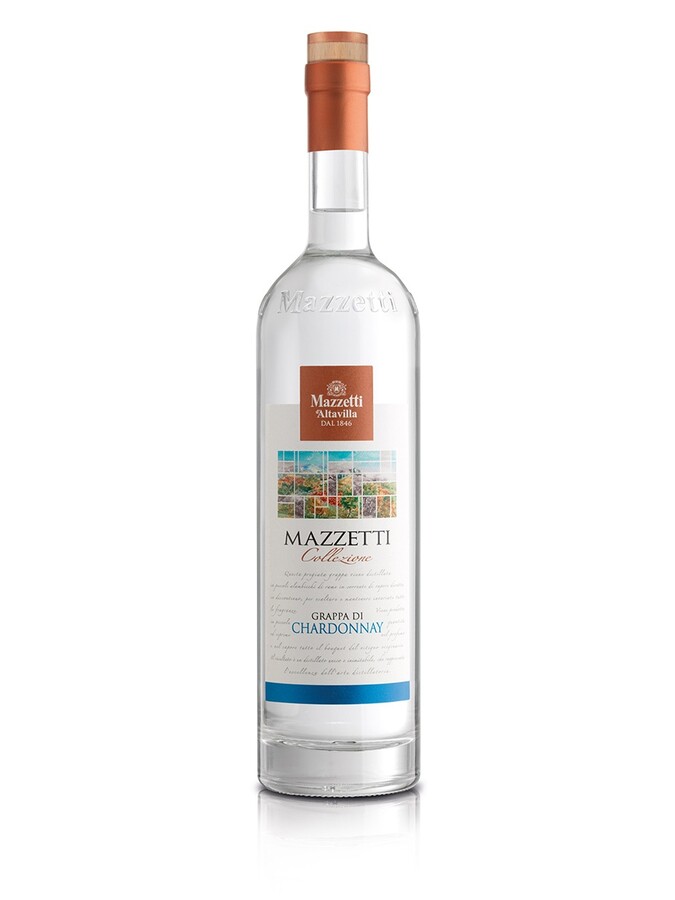 La Grappa di Chardonnayè trasparente e cristallina, estratta da vinacce di uve monovitigno. Ha un aroma fine ben fruttato, un profumo al naso di frutta rossa con note balsamiche di erbe aromatiche, presenta un gusto elegante ed armonico.