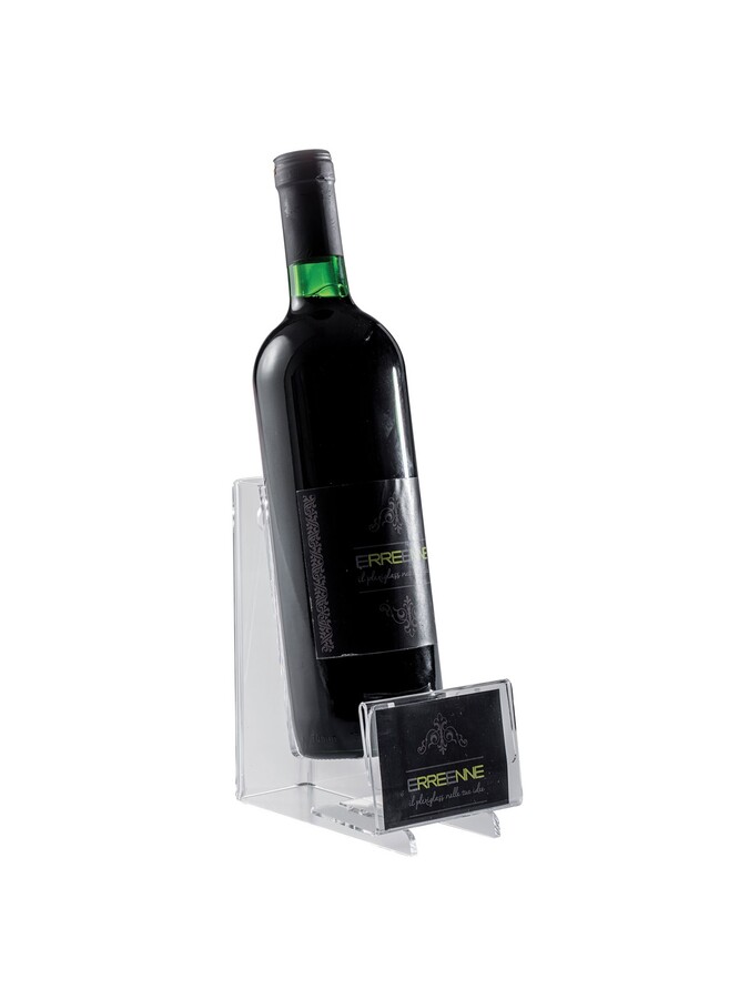 The bottle holder 1 place, modern designer to expose the wines that you will love, made of the finest transparent plexiglass, with label holder.