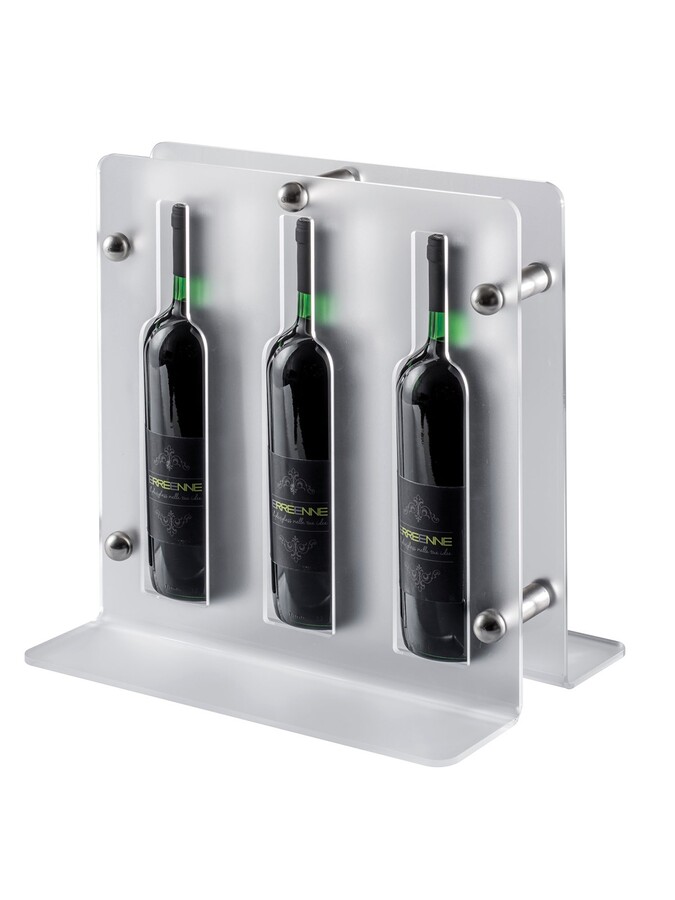 Elegance and sobriety with the bottle holder in 3 places; the Art designer modern for your collection of wines made of the finest transparent plexiglas with wall connection, for a framework of high quality.