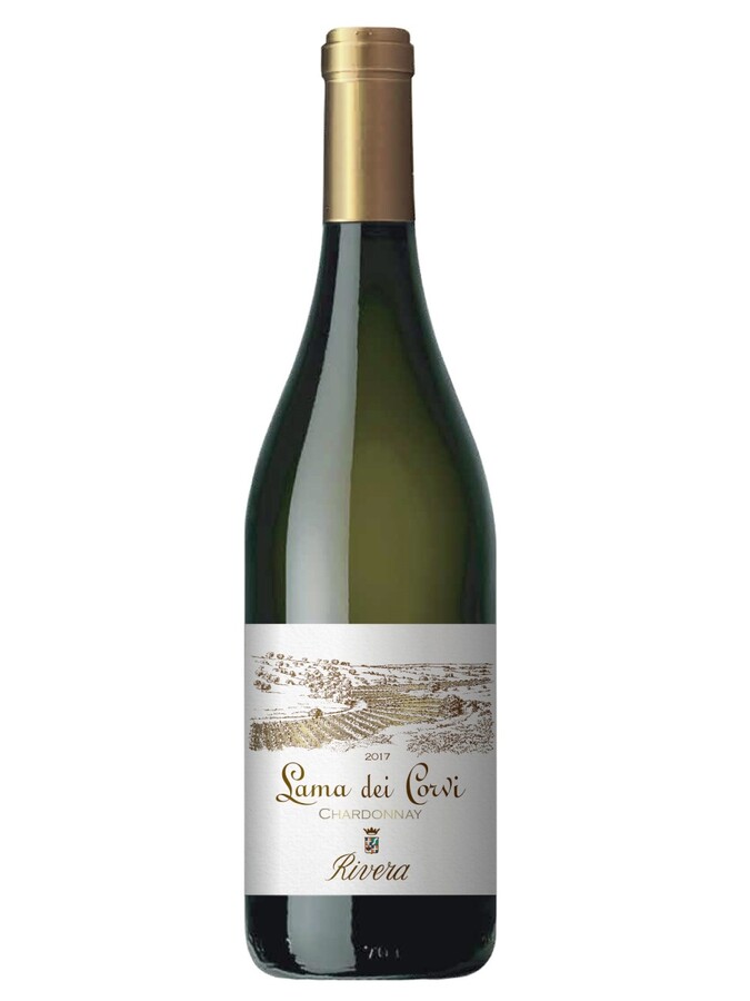 The Chardonnay Lama dei Corvi Castel del Monte Doc, the only one of its kind to be vinified and aged in wood. An international vine, it has acclimatised for many decades in the north of Bari from which the Rivera Company obtains excellent results. Wine with balanced taste and marked freshness, an extraordinary evolution of the whites of the South, very rich on the nose and goes well with fish dishes.
