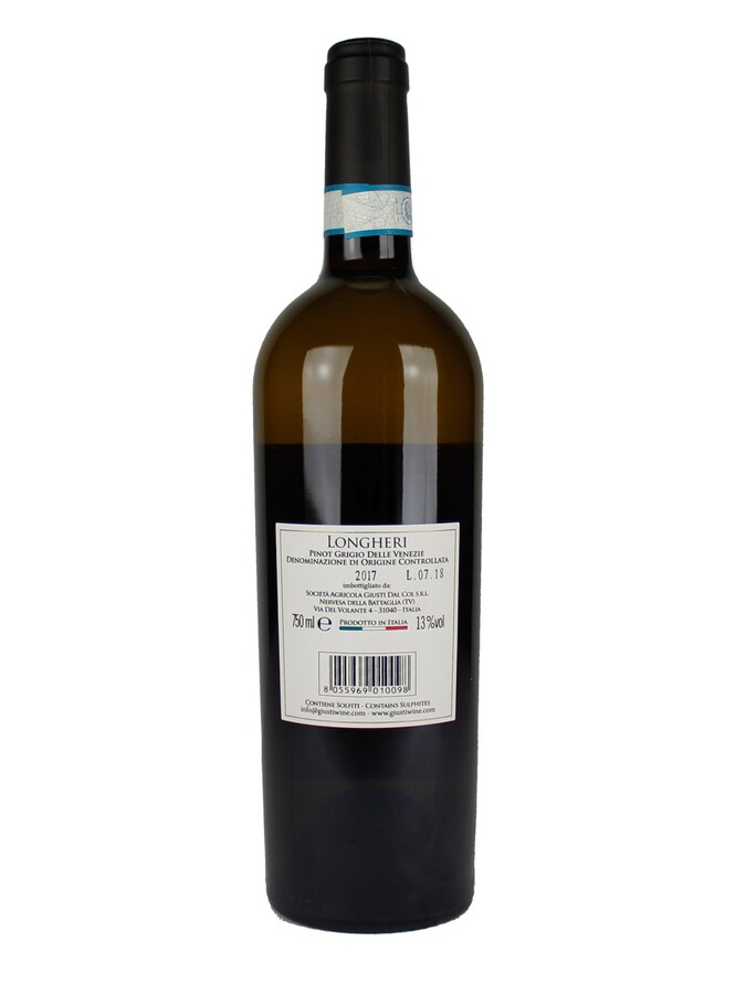 Uncork Pinot grigio Longheri IGT Venezie Giusti and serve at a temperature between 9 - 12 ° C, in a Burgundy glass.