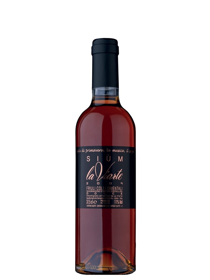 Sium in Friulian means dream and this is what he wants to give this wine. Picolit and Verduzzo from Friuli in equal parts withered and aged in cask. It has a vivid amber yellow color and moves slowly in the glass. Elegant pleasant sweet wine, rich and complex aromas. Very consistent, it caresses the palate leaving an important persistence.