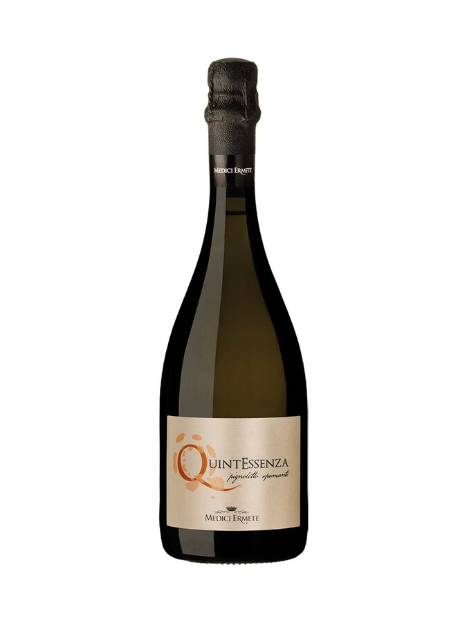 Quintessenza Pignoletto Brut Metodo Martinotti Medici Ermete appetizers in general, Parma ham, first courses of Emilia excellences: pasta, meats, cured meats and tortellini tigelle, ribollita, stews, fish soups, Parmigiano Reggiano.