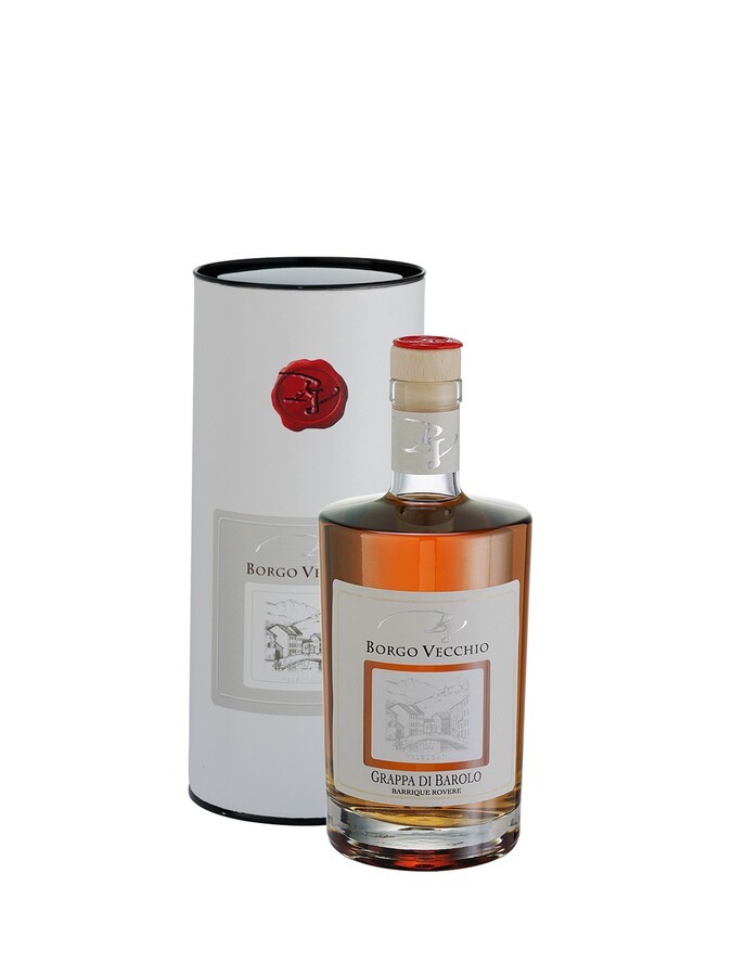 Excellent marc monovitigno Nebbiolo of Barolo, select affinity-geology-climate-plant and processing, the skins are distilled in a discontinuous still with steam experience from the master distiller Alexander Cavalin, creating a grappa that color ambradal elegant smell. Subsequently it is left to rest long in oak barrels and extract from the wood a natural color, and a character full-bodied, elegant.