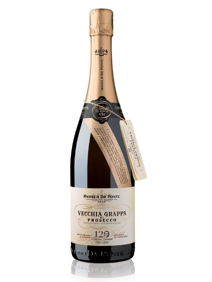 Made with pomace monovitigno di Prosecco of Valdobbiadene characterized by the pale yellow colour given by 8 years of ageing in oak barrels, and its intense scent, an explosion of aromas, and notes even more lovely through the ageing process.Product created for the 120 anniversary of the founding of the Distillery.