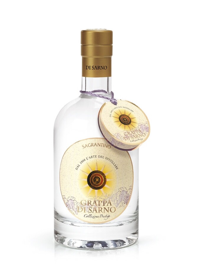 The Sommelier: The nobile Grappa Di Sarno Sagrantino extracted from the pomace fermented grape varietal Sagrantino of Umbria, an excellence that is regional. Perfume intense floral aroma composed and harmonious, with notes of fruit of the bramble (blackberries).