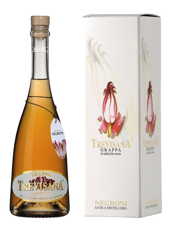 Grappa di Trevisana 70cl Negroni Antica Distilleria obtained from the pomace, and the infusion of the RadicchI Rosso di Treviso I. G. P. Color yellow dark amber. To the nose, and it dominates the fragrance of the radicchi. Sensations, confirmed also at the level of the back-olfactory. Flavour: perfect equilibrium between the sweet leaf of the chicory of Treviso and the aromatic note of extracted from the root of the same.