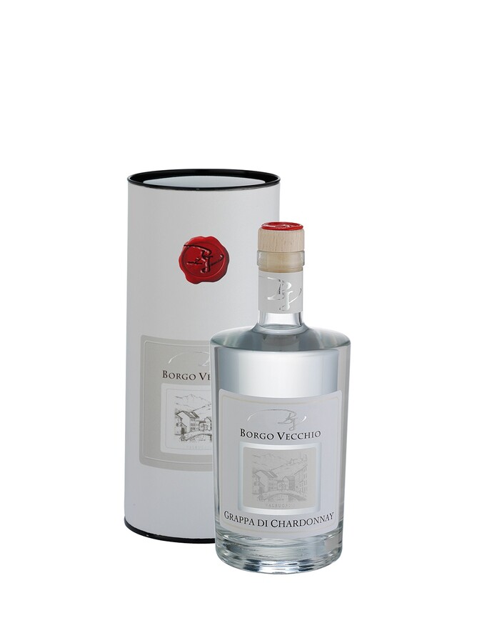 From the marc fruity notes of Chardonnay with the typical varietal of trentino white grape, selected for affinity-geology-climate-plant and manufacturing of the skins, where grapes and fruit assimilate the special features of the olfactory and organoleptic and after being pressed is distilled in discontinuous still steam, and at the end mixed with experience from the master distiller Alexander Cavalin, creating a grappa crystalline, fruity and delicate with a soft and harmonious taste.