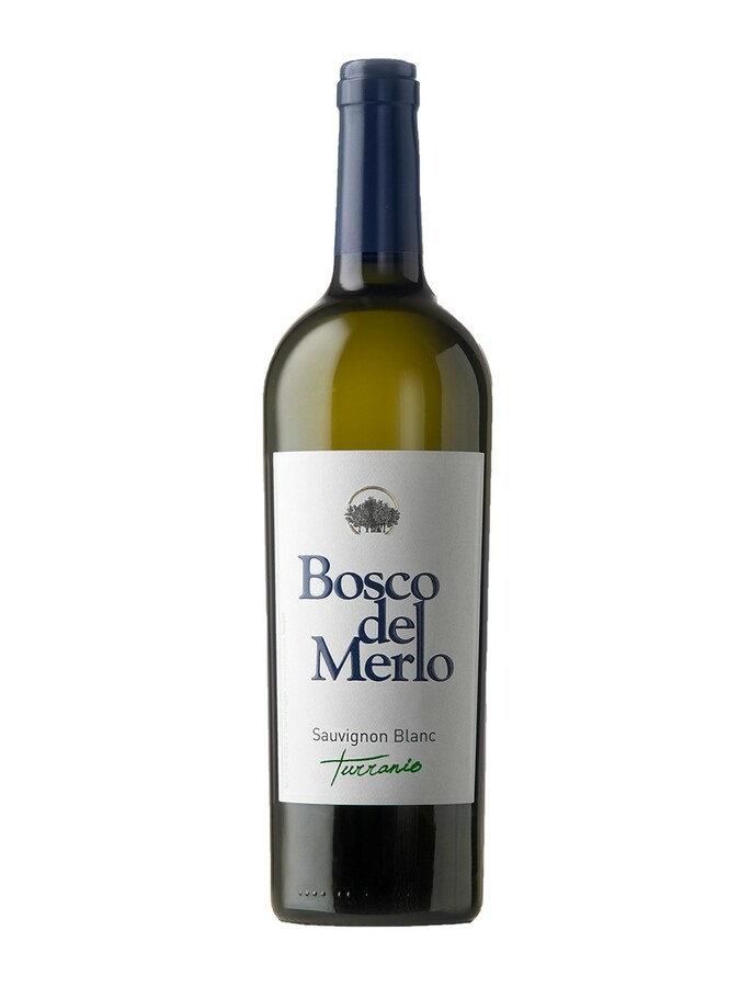 The high quality Sauvignon Blanc Turranio wine produced by Bosco del Merlo. Veneto white wine with a straw yellow color and greenish reflections. Consistent wine with its 13.00% vol. On the nose a scent of melon, peach and pepper leaf; In the mouth dry, decisive flavor and persistence with a slightly bitter aftertaste. Recognizable wine for the refinement and elegance of its notes, good balance, harmonious.