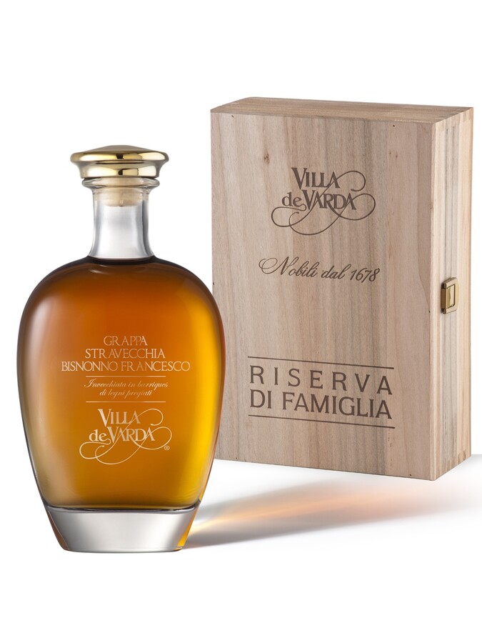 Grappa Stravecchia Bisnonno Francesco la Top Selection di Villa de Varda, Grappa di Muller Thurgau, Toroldego. La continuità della generazione conserva la ricetta originale. Un protocollo di produzione che consente di conservare tutta l’autenticità di una grappa nata duecentodiciannove anni fa, Uno straordinario assaggio di storia e territorialità, profumi intensi quasi personalizzati mediante il metodo di distillazione discontinuo de Varda. Ogni bottiglia rappresenta la carta d’identità della storica azienda Trentina.