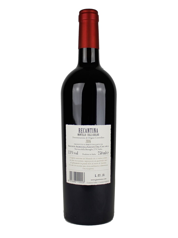 Stappare il Recantina Augusto Montello e Colli Asolani DOC 2017 Giusti e servire a temperatura tra 16 - 17°C,in calice Ballon medio.