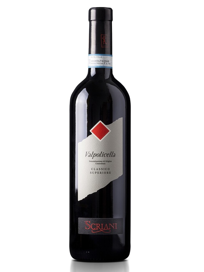 Valpolicella Classico Superiore DOC Scriani blend di uve Corvina, Corvinone, Rondinella, Oseleta e Molinara producono un ottimo vino rosso Veneto di buona intensità. Profumo richiama alle note di ciliegia matura, marasca e prugne leggermente appassite; In bocca morbido e avvolgente, con una piacevole sapidità e note di frutta matura e spezie, buona la persistenza.