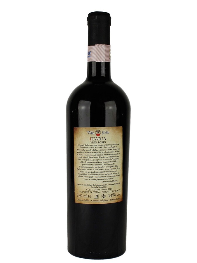Stappare e servire Iuaria rosso d'Abruzzo 2020 Villa Colle alla temperatura 16-18°C in calice Ballon.
