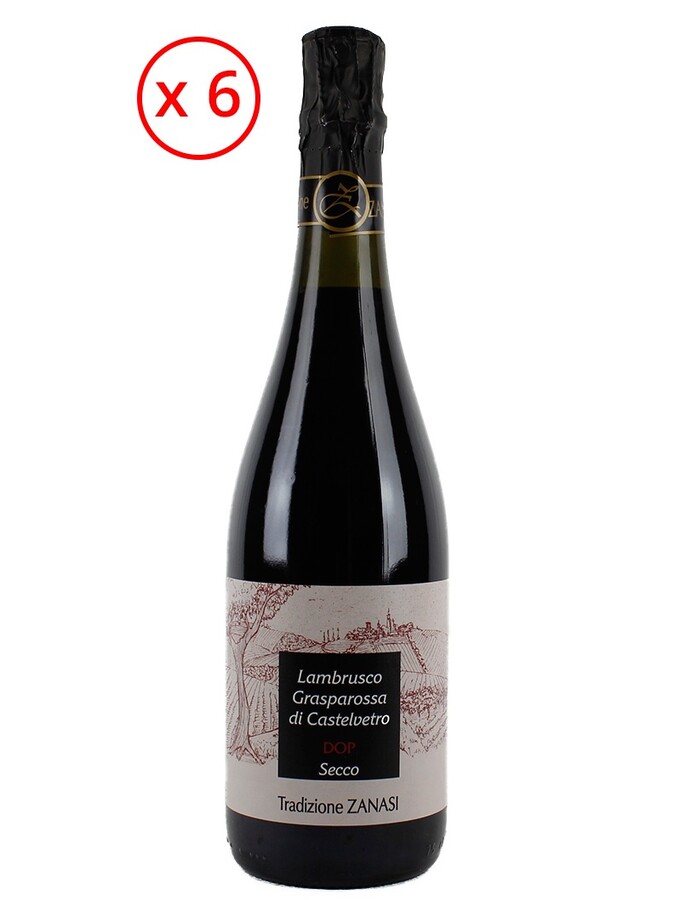 Servite Lambrusco Grasparossa di Castelvetro D.O.P. Secco Zanasi senza parsimonia alla temperatura di 8 -10°C in calice Tulipano.