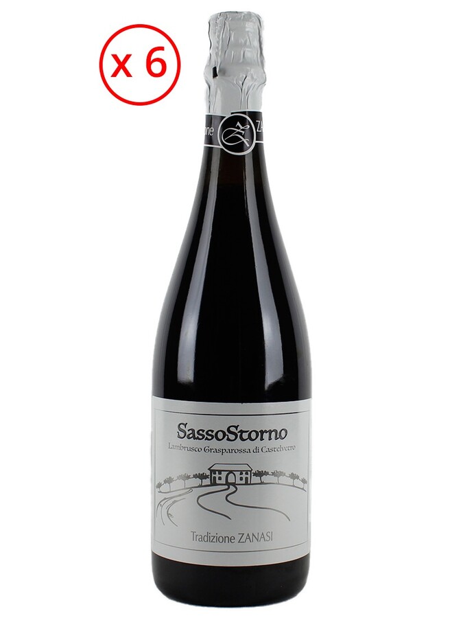 SassoStorno Lambrusco Grasparossa di Castelvetro DOP Secco Zanasi, su antipasti di prosciutto crudo, tortellini, carne rossa argentina, zuppe di rombo con pomodorino e pepe nero, Parmigiano stagionato, frutta secca.